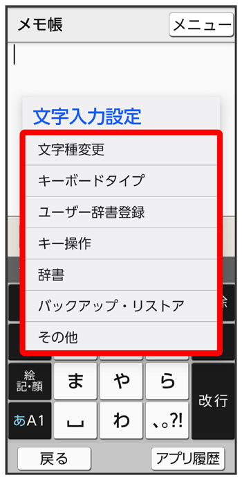 文字入力の設定を行う