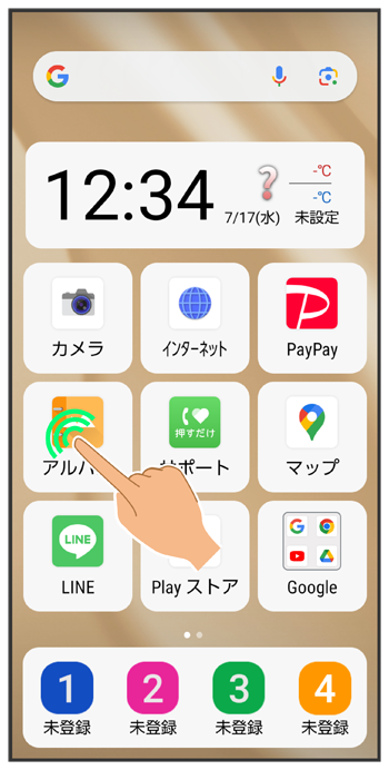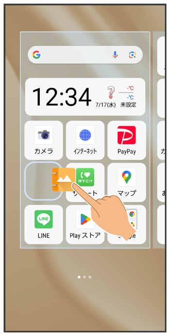 ホーム画面で、まとめたいアイコンをロングタッチ