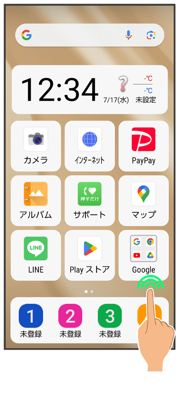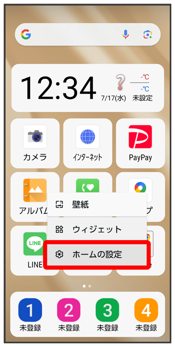 | Google アプリの表示 | ホーム画面の左側に、ニュースや天気などの情報を表示するかどうかを設定します。 |