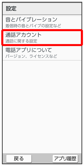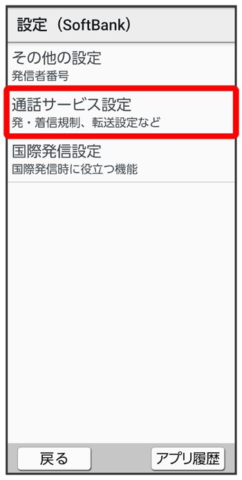 通話サービス設定画面が表示されます。