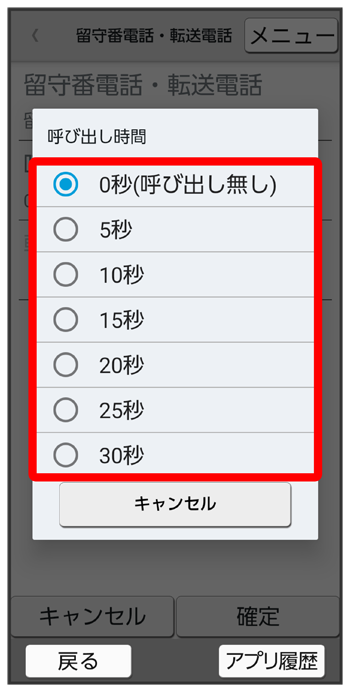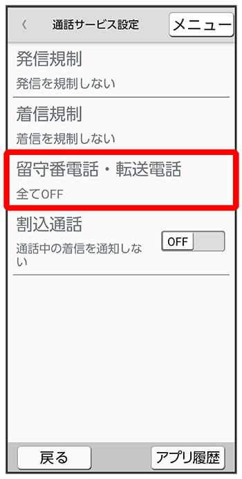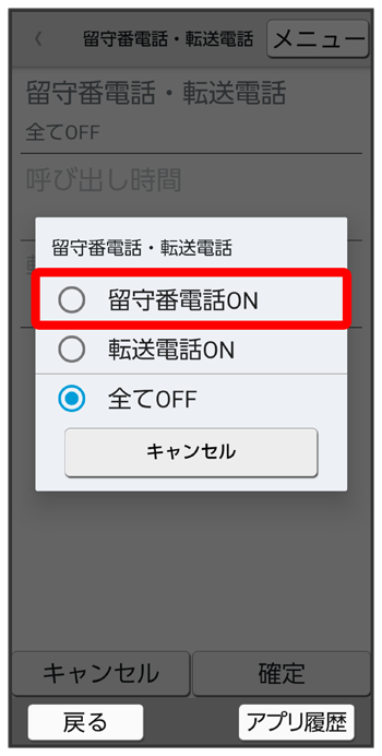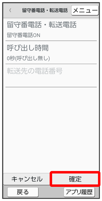 留守番電話・転送電話画面で