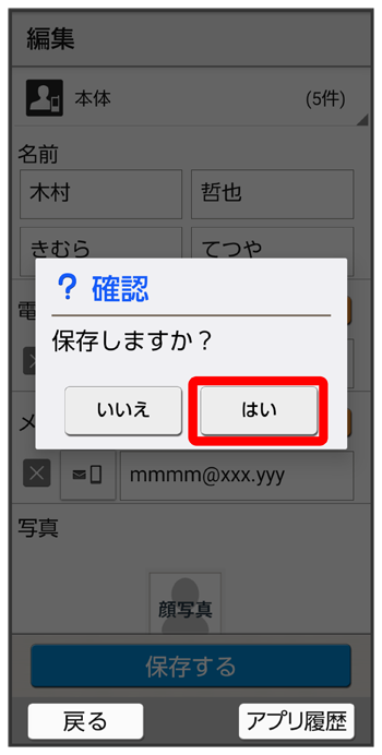 楽ともリンクに登録した電話帳(連絡先)の電話番号やメールアドレスを編集すると、楽ともリンクの電話番号やメールアドレスは未設定となります。ご注意ください(名前や画像は、編集結果が反映されます)。