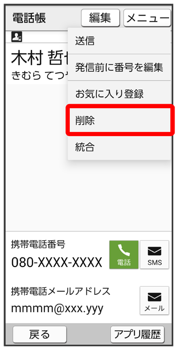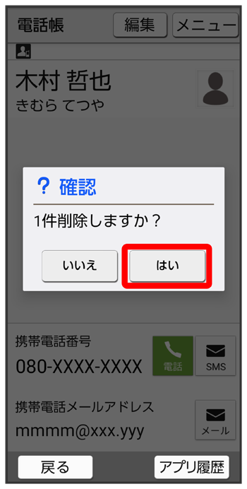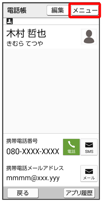 - 選択中の索引を再度タップすると、行内の文字(「あ行」のときは「あいうえお」)が表示されます。隠れている電話帳がある場合、文字をタップすると、その文字から始まる読みの電話帳が表示されます。