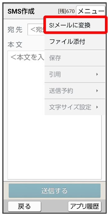 送信できなかったS!メールは、未送信ボックスに保存され、2回まで自動再送されます。