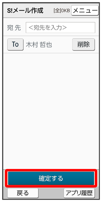 - をタップすると、メールグループを選択して、メールグループに登録されたすべての宛先を送信する宛先に設定できます。