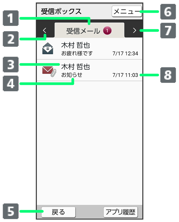 メール一覧画面(受信ボックス/送信ボックス)で並べ替え方法をタップメールを別のフォルダに移動する
