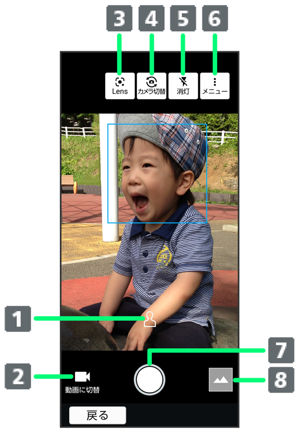 インカメラ/アウトカメラを切り替えます。 - モバイルライト