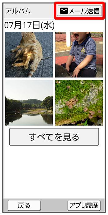 - S!メール作成について詳しくは、「S!メールを送信する」の手順