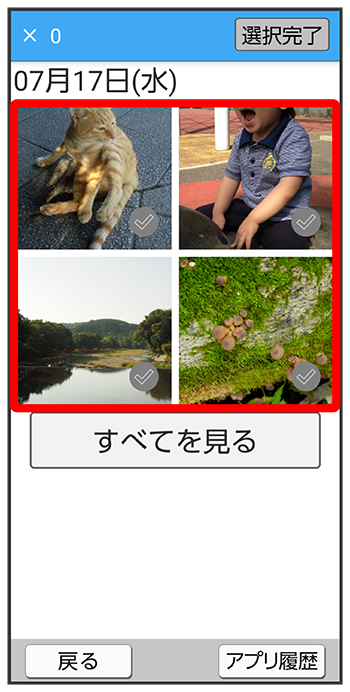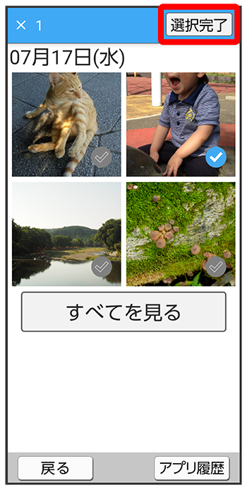 )が切り替わります。 - 写真/動画は複数選択することもできます。