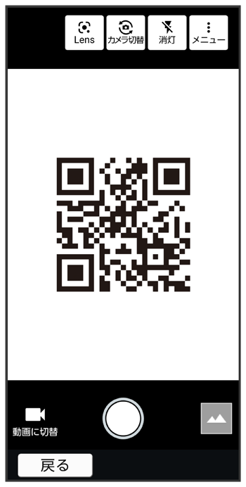 写真撮影画面に切り替える読み取るQRコード(バーコード)を画面に表示する