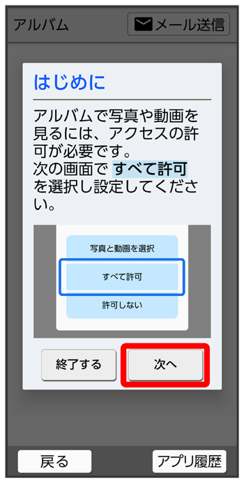 (アルバム)をはじめて起動したときの操作を例に説明します。