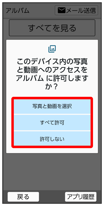 アプリが本機のデータやカメラなどを利用することを許可します。