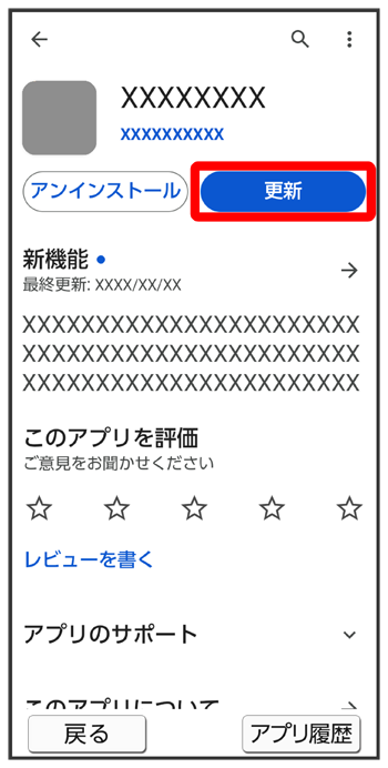 Google Play画面で- 確認画面が表示されたときは、画面に従って操作してください。
