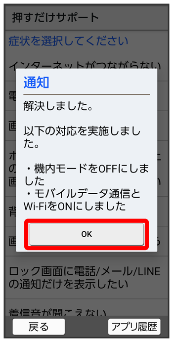- 気になる症状の中にあてはまる項目がない場合や、症状が解決できない場合はと操作すると、シンプルスマホ カスタマーセンターに無料で電話をかけることができます。