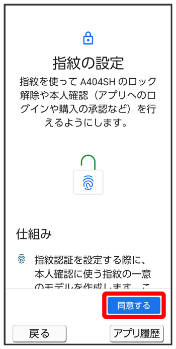 - 指紋センサーに指を触れたまま指紋の登録や認証を開始すると、起動できない場合があります。指を離し、再度操作してください。