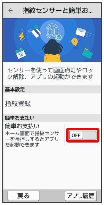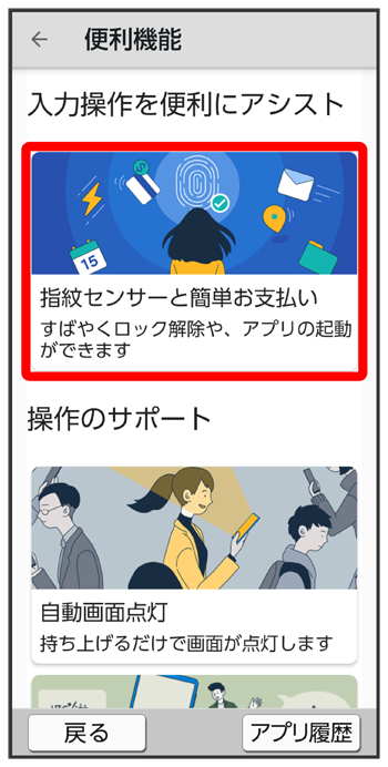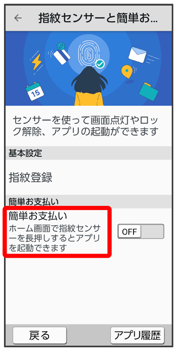 - で設定したアプリは、指紋センサーをロングタッチするだけで起動します。