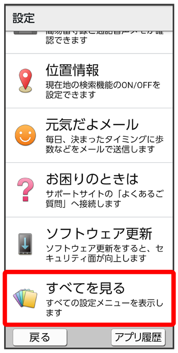 | 持つと画面点灯 | 本機を机の上などから持ち上げて静止したときに、画面を点灯するかどうかを設定します。 |