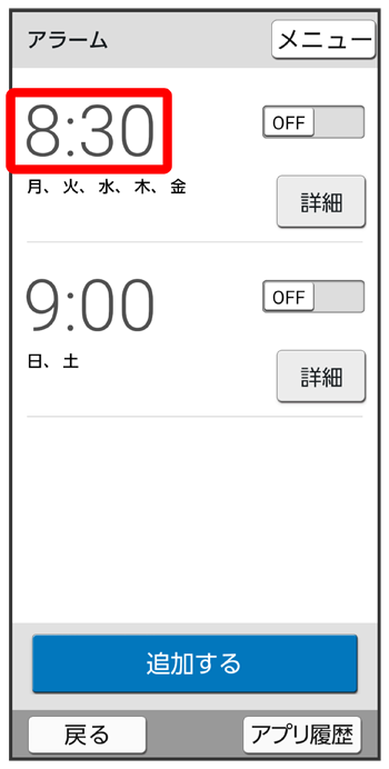 アラームを設定する