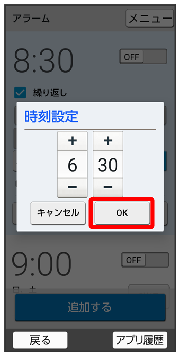 - をタップすると、アラームを追加できます。