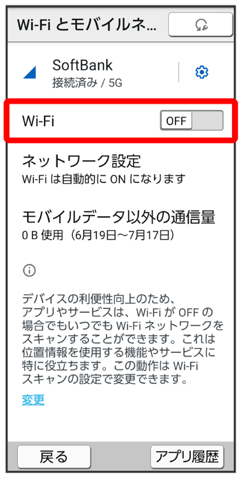 ホームネットワークなど高品質の保存済みネットワークが利用できるとき、自動的にWi-Fiを有効にするかどうかを設定する