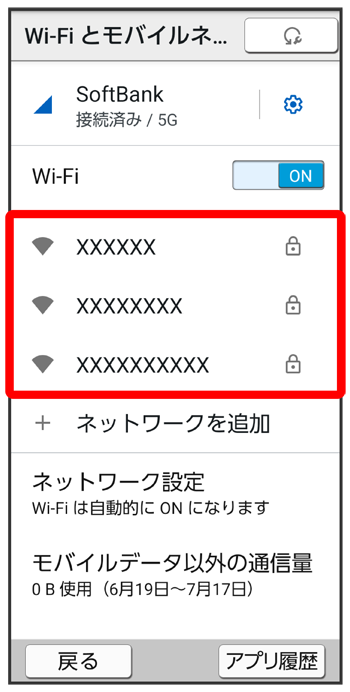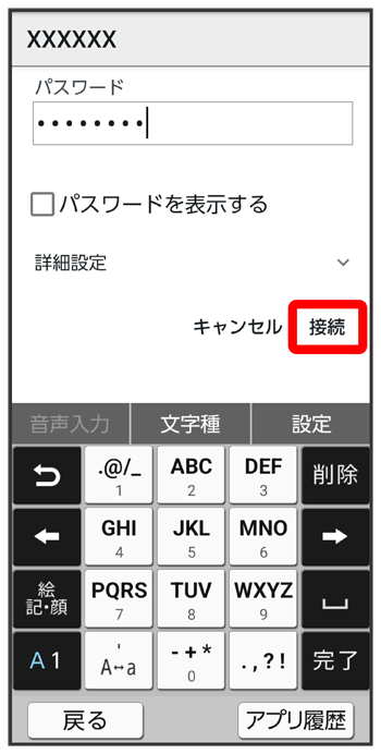 Wi-Fi画面で、接続中のアクセスポイントをタップ