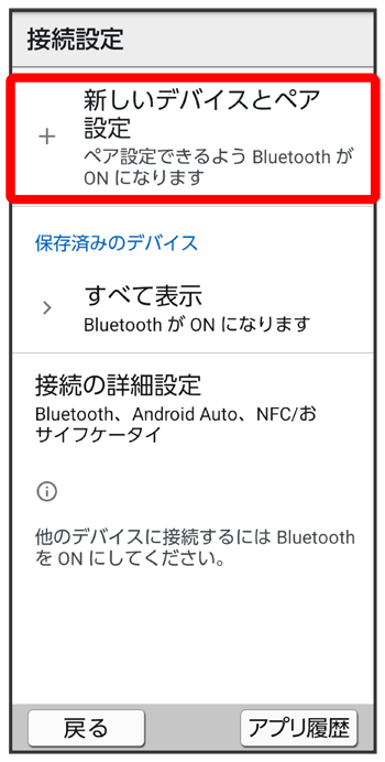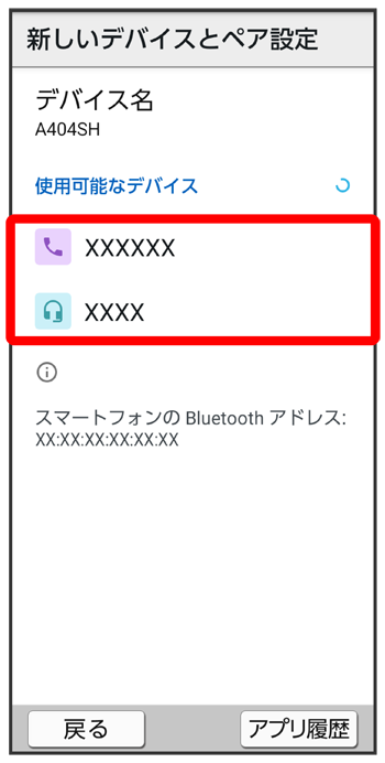 「使用可能なデバイス」欄に近くにあるBluetooth®機器が表示されます。