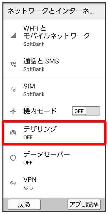テザリング機能を設定する