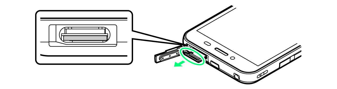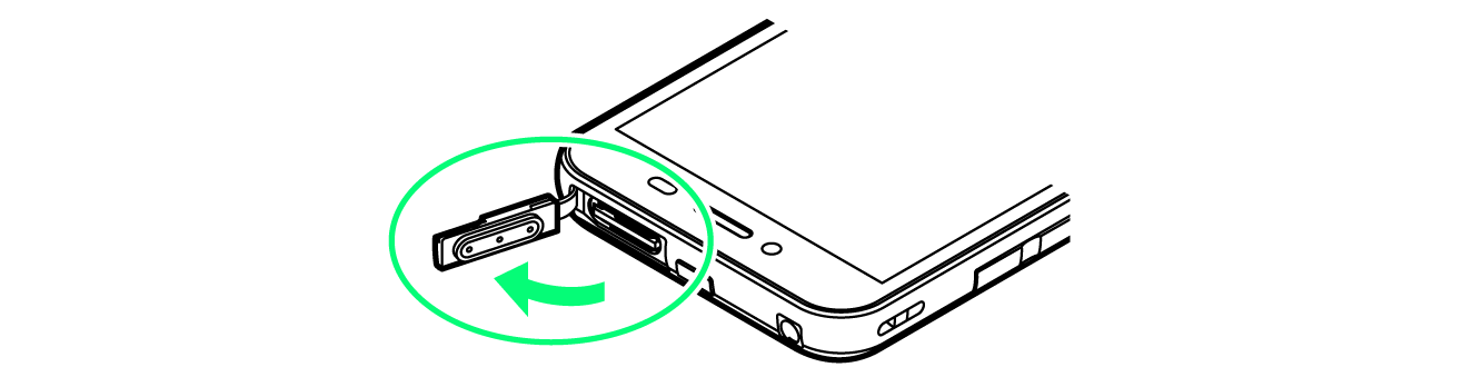 SDカード・USIMカード挿入口キャップ(以降「カード挿入口キャップ」と表記)を開く