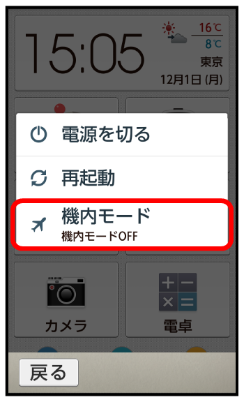 Wi-Fi機能やBluetooth®通信を有効にしているときに機内モードに設定すると、その時点でそれぞれの通信が無効になります。データ通信中に操作すると切断されますので、ご注意ください。