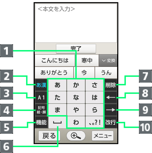 - 記号/絵文字/マイ絵文字1/顔文字を入力