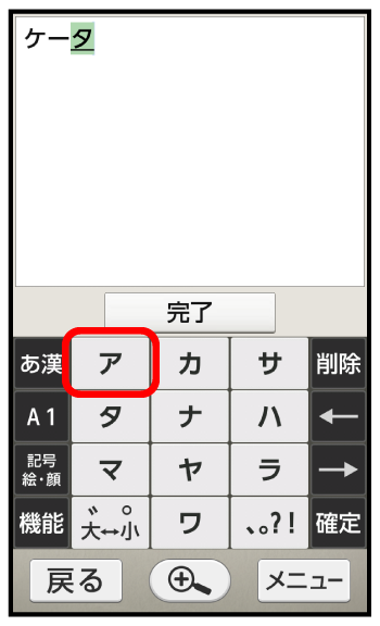 - キーをくり返しタップせず、キーを長く押したときに表示されるキー入力ガイドを利用して文字を入力することもできます。詳しくは「フリック入力(ドラッグ入力)について」を参照してください。