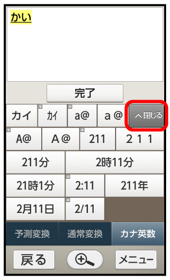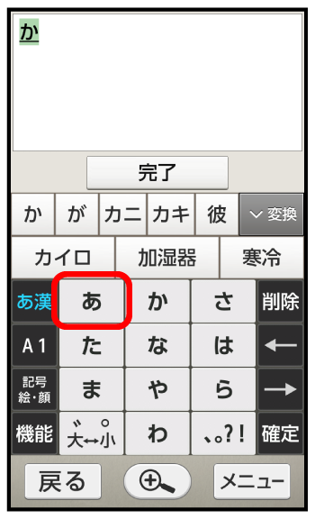 文字入力画面で(1回:か)(2回:い)