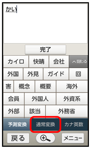 入力したひらがなに該当する文字だけが表示されます(通常変換)。