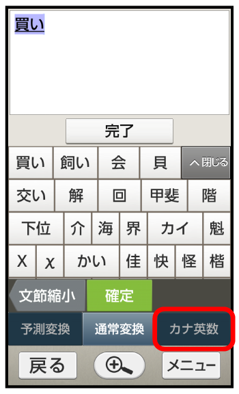 入力したひらがなから変換できるカタカナや英字などが表示されます(カナ英数変換)。