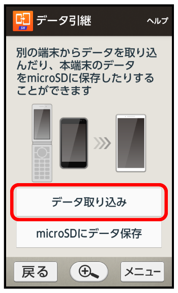 - SDカードにデータが保存されていないときは、取り込み元機器の選択画面が表示されます。画面に従って操作してください。
