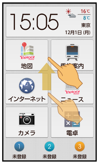 ホーム画面を上にドラッグ