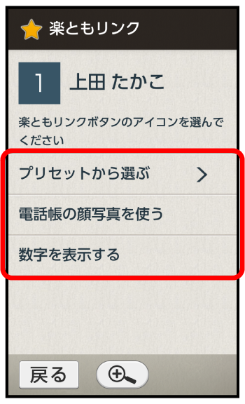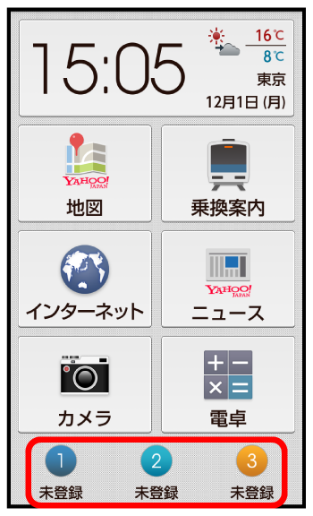 の各ボタンに登録します。登録後は、ボタンの下に登録した相手の名前が表示されるようになります。