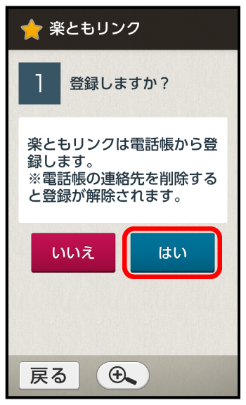 - すでに緊急ブザー連絡先に登録されている電話帳のときは、上記の画面は表示されず、楽ともリンクの登録が完了します。