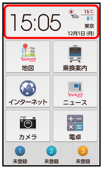 ホーム画面(トップエリア)に、選んだ地域の天気予報が表示されます。