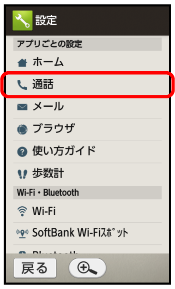 通話設定画面で項目をタップ画面に従って操作- 「着信お知らせ音」、「バイブのパターン」、「着信ランプ」、「鳴動時間」が設定できます。