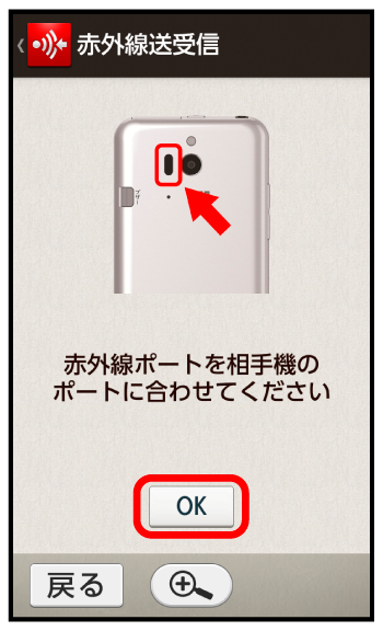 本機と送信側の機器の赤外線ポートを合わせる