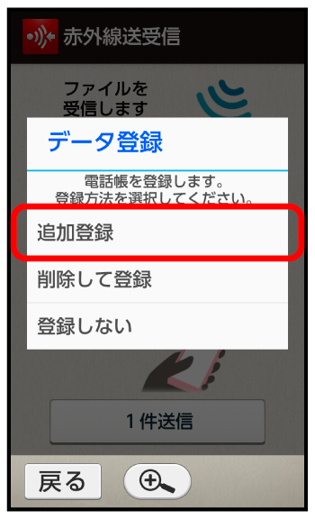 赤外線通信で電話帳を受信する