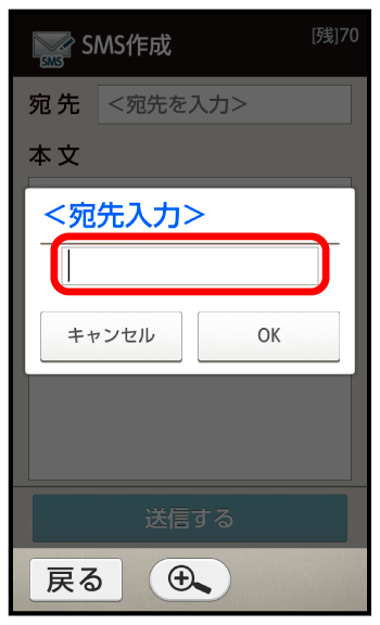 相手の携帯電話番号を入力して送信する方法を例に説明します。