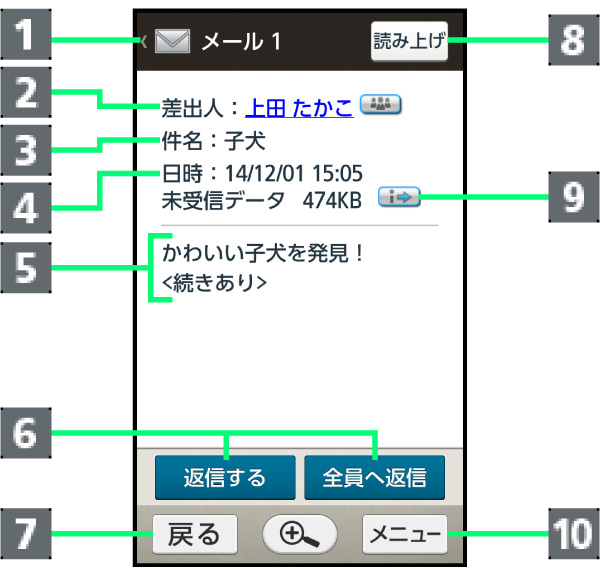 - メールの内容を音声で読み上げる(をタップすると読み上げ終了)