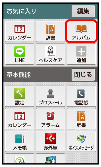 - はじめてアルバムを起動したときは、カテゴリの画像一覧画面が表示されます。2回目以降は、前回終了時の画面(画像一覧画面またはフォルダ画面)が表示されます。