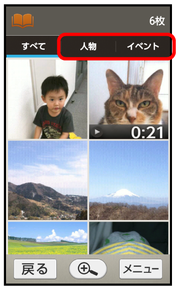 人物が写った静止画/動画や、同じ日や同じ予定期間に撮影された静止画/動画は、自動的に人物別/イベント別のフォルダに振り分けられます。次の操作で、自動分類されたフォルダに名前を設定することができます。