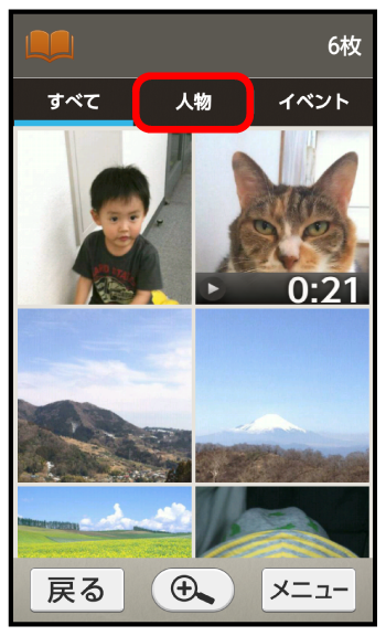人物のフォルダ画面で、フォルダをタップ移動先をタップ- 静止画/動画が移動され、移動先の人物と統合されます。