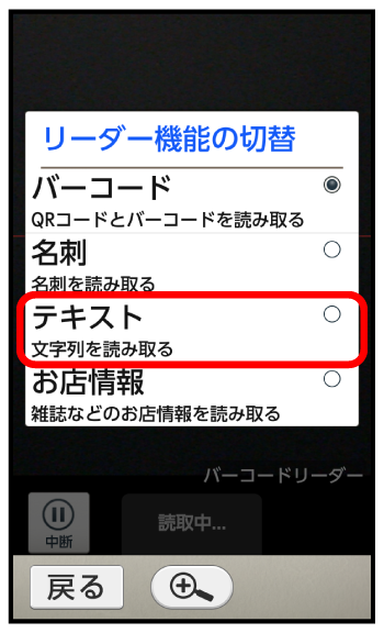 読み取り結果(モード種別)画面でモード種別をタップ単語以外の読み取り結果を利用する
