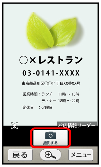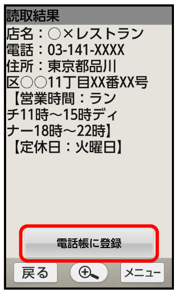 店名や電話番号などの文字情報(日本語/英数字)を読み取って、電話帳に登録できます。