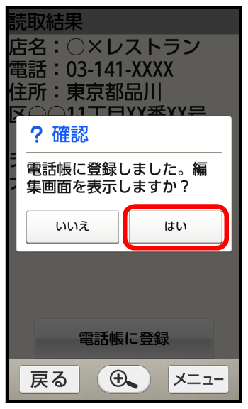 読み取った情報が入力された電話帳編集画面が表示されます。